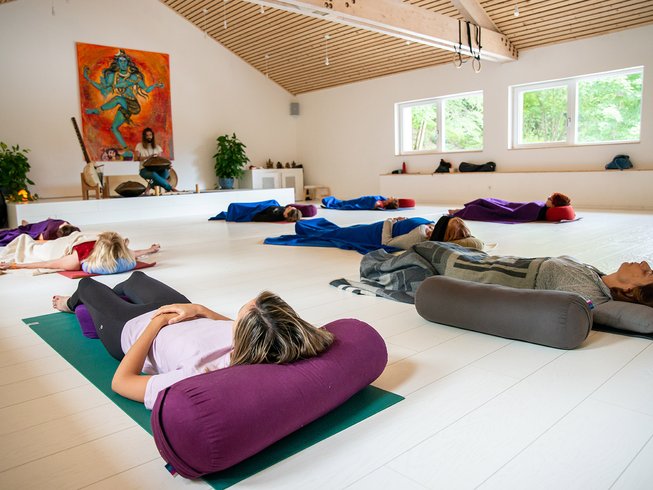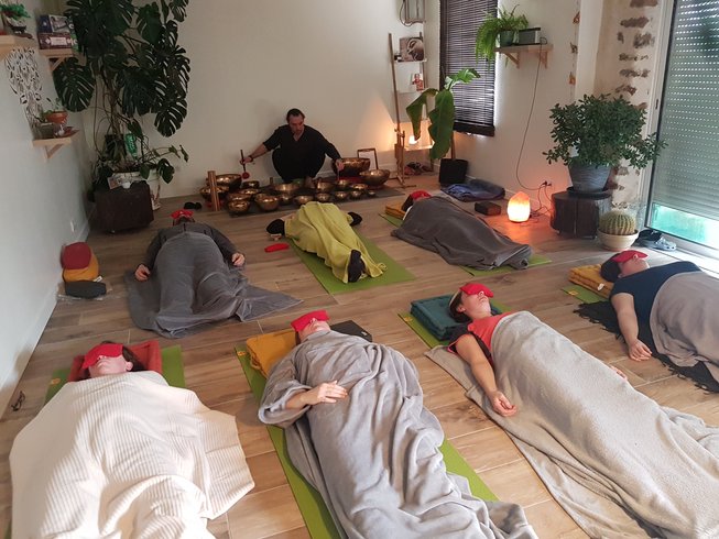 Si vous ressentez le besoin de calmer le mental et détendre le système nerveux, cette retraite est une pépite. En plein cœur de la nature, à deux heures de Paris, elle propose une approche complète mêlant yoga, respiration consciente (pranayama), méditation, et bains sonores aux bols tibétains.